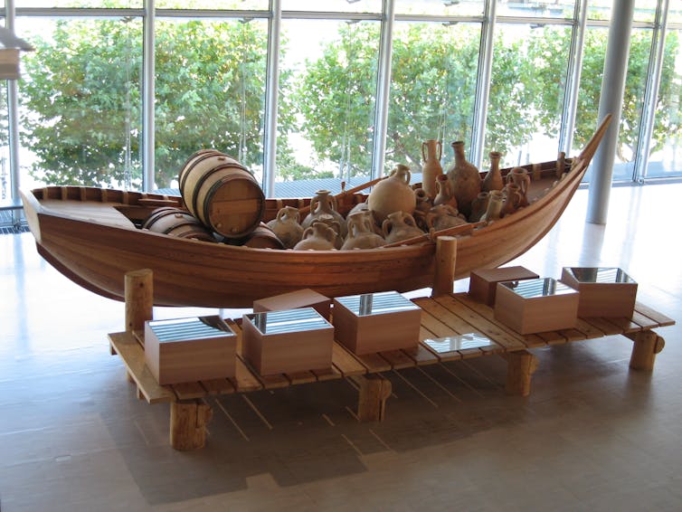 Posteriormente, el aceite era subido a barcas fluviales de pequeño o mediano tamaño (lintres, scaphae) y transportado río abajo con dirección a Hispalis, donde las ánforas serían cargadas en grandes naves mercantes que debían llevarlas a Roma, a los campamentos legionarios del Limes Germanicus o de Britannia y a los principales puertos del Imperio.